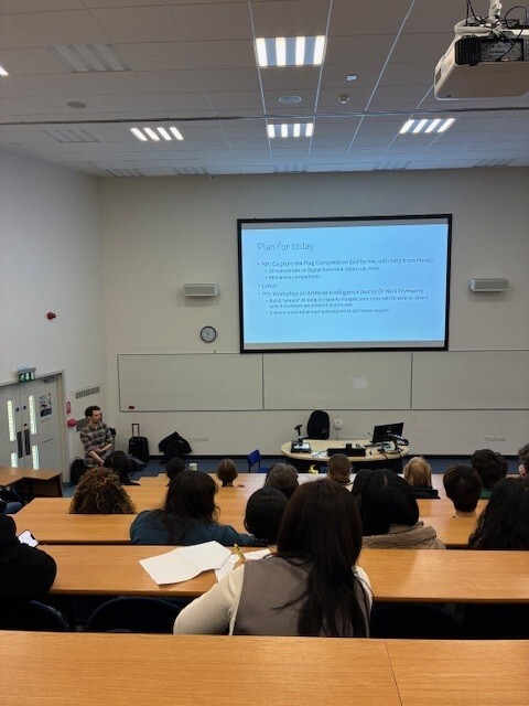 The day began with students meeting at the Alan Turing statue, before attending a welcome talk and insight into the importance of cybersecurity in society. The main competition then took place in the Ada Lovelace Computer Lab, where teams tackled a range of cyber “Capture-the-Flag” style challenges testing their problem-solving, programming, and cybersecurity skills.